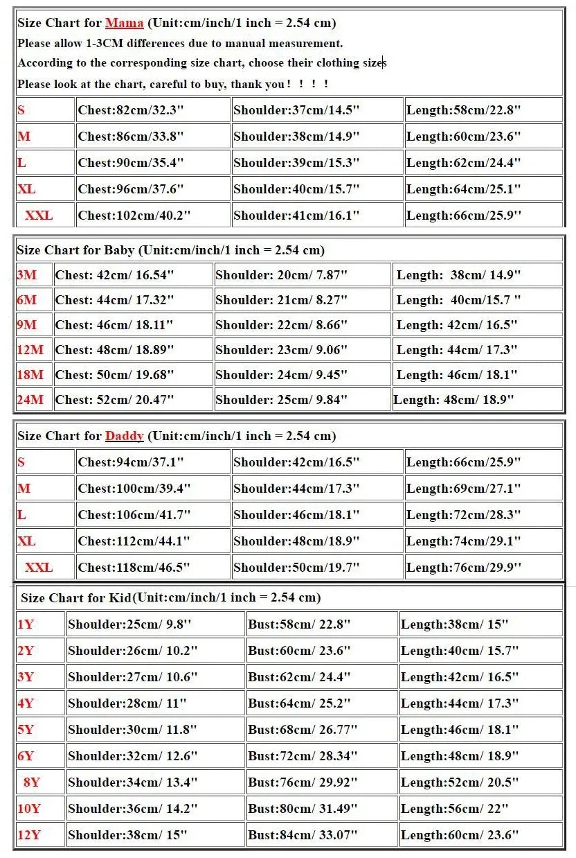 For example, you want to order size 1Y for kids, mommy size M for Women,daddy size L for men,baby size 3M